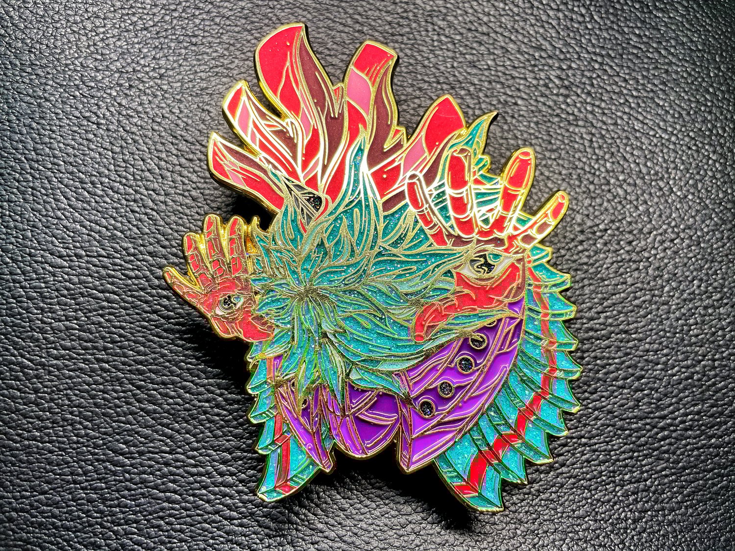 This “Noctilucent Queen” variant from The •LA DÉESEE FLORA• Flora Collection is based on the Digital/Animated NFT that when purchased directly from the Artist, unlocks a link to purchase the matching Limited Edition of 20 Enamel Pin. The Enamel Pin features Red/Turquoise/Purple UV-Reactive Enamel, Turquoise Glitter, and Glow.